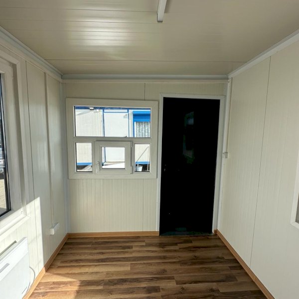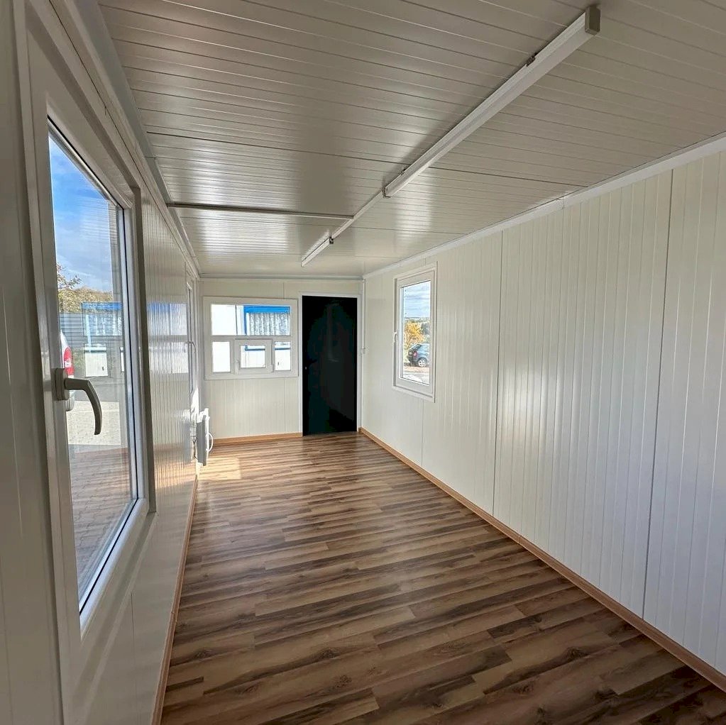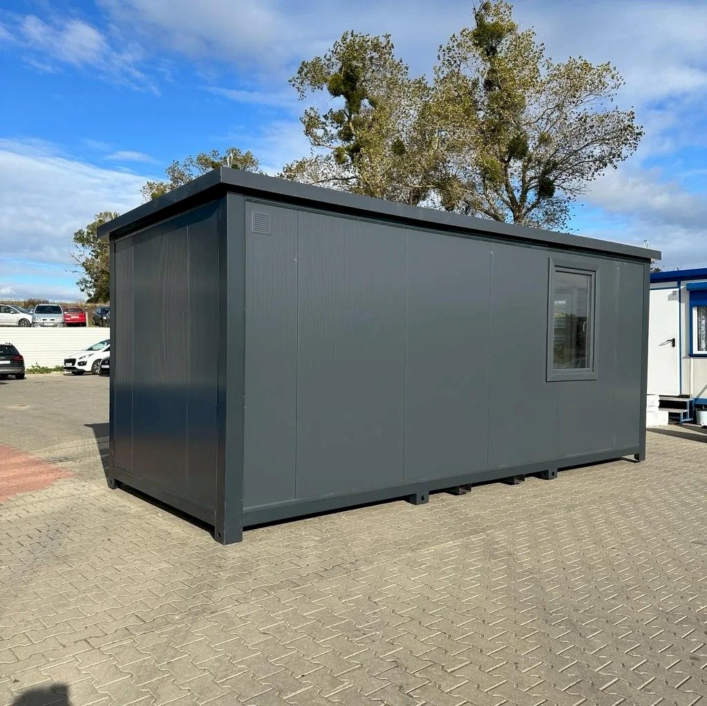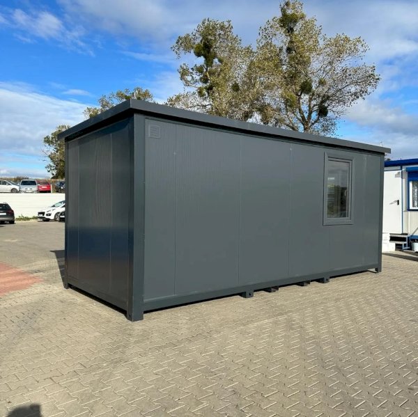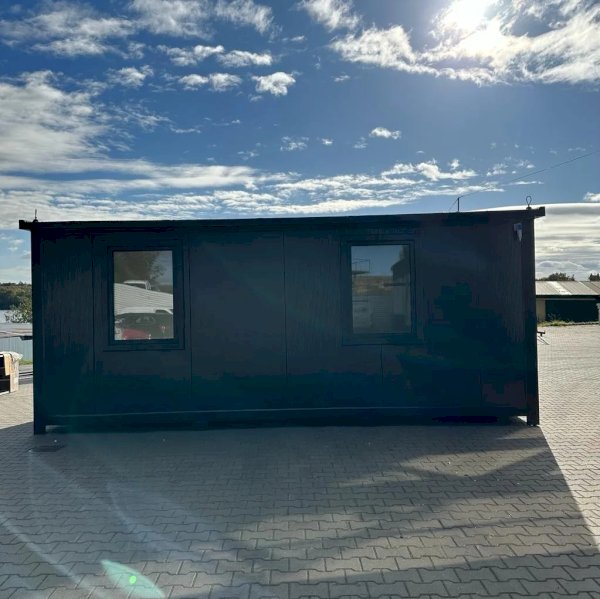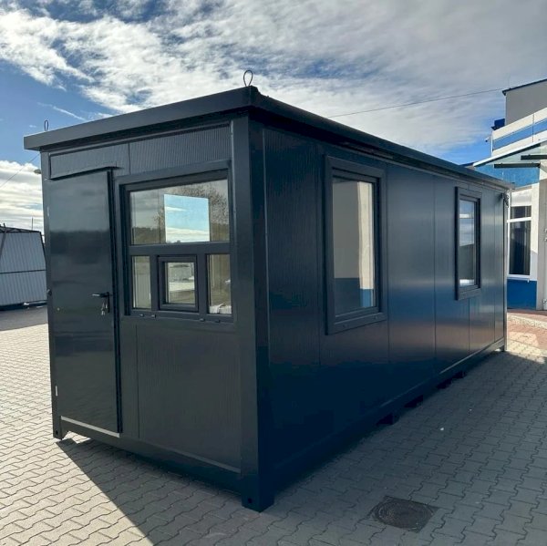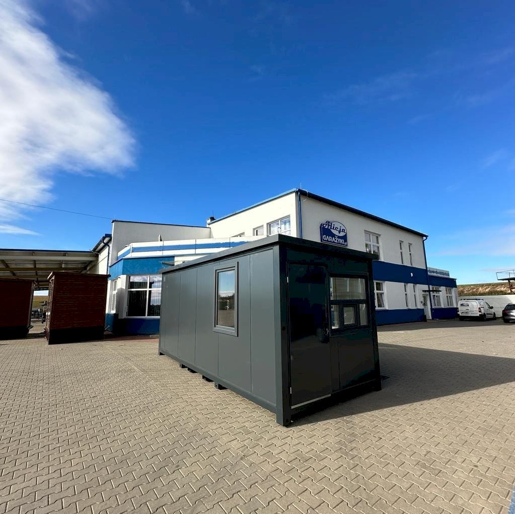 Nowoczesny i estetyczny kontener biurowy o wymiarach 600×240 cm, stworzony z myślą o funkcjonalnym użytkowaniu w przestrzeni komercyjnej, przemysłowej oraz na placach budowy. Idealny jako samodzielne biuro, punkt sprzedaży, stanowisko ochrony lub zaplecze dla pracowników. Solidna konstrukcja, estetyczne wykończenie i pełna instalacja sprawiają, że kontener jest gotowy do natychmiastowego użytku.
