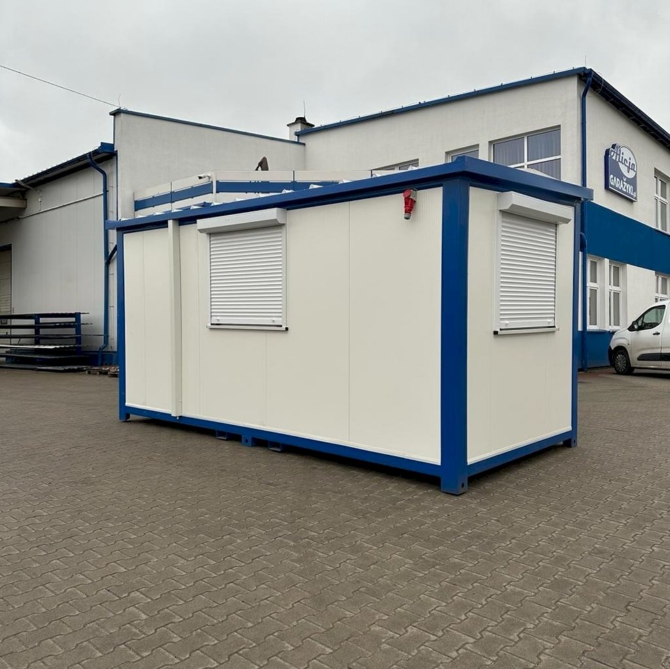 Estetyczny, funkcjonalny i całoroczny kontener biurowy o wymiarach 5×2,4 metra, zaprojektowany z myślą o komforcie pracy oraz trwałości użytkowania. Doskonały jako mobilne biuro, punkt handlowy, recepcja lub zaplecze techniczne. Posiada pełne wyposażenie elektryczne, ocieplenie, klimatyzację oraz solidną stolarkę okienną i drzwiową.
