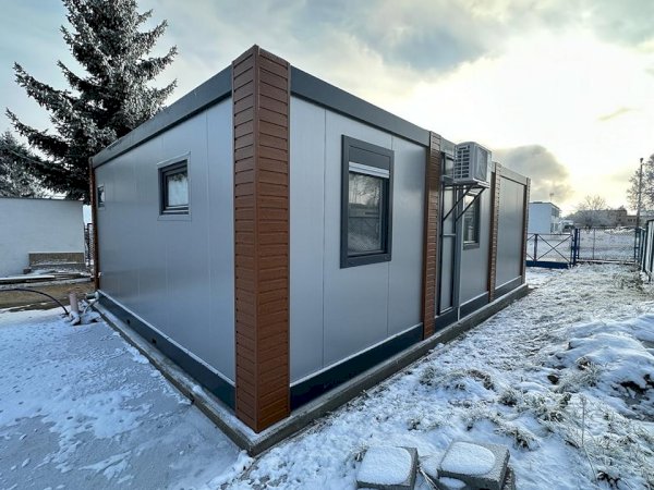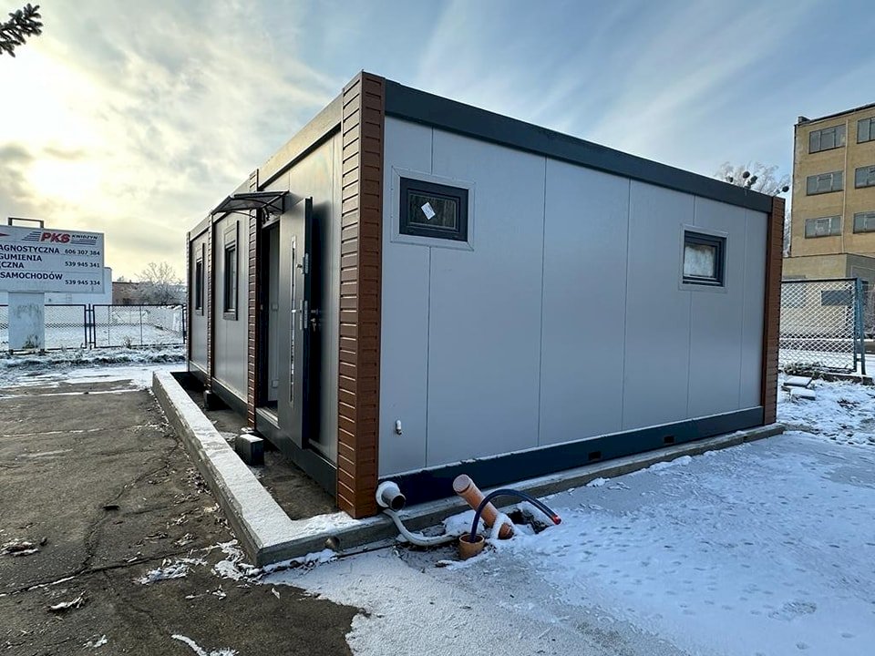 Wymiary i wysokość: - Łączony z trzech kontenerów 3000 mm x 6000 mm - Minimalna wysokość wewnątrz: 2500 mm - Maksymalna wysokość zewnętrzna: 2990 mm