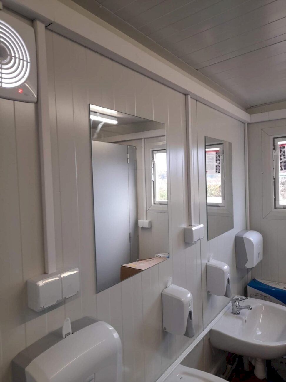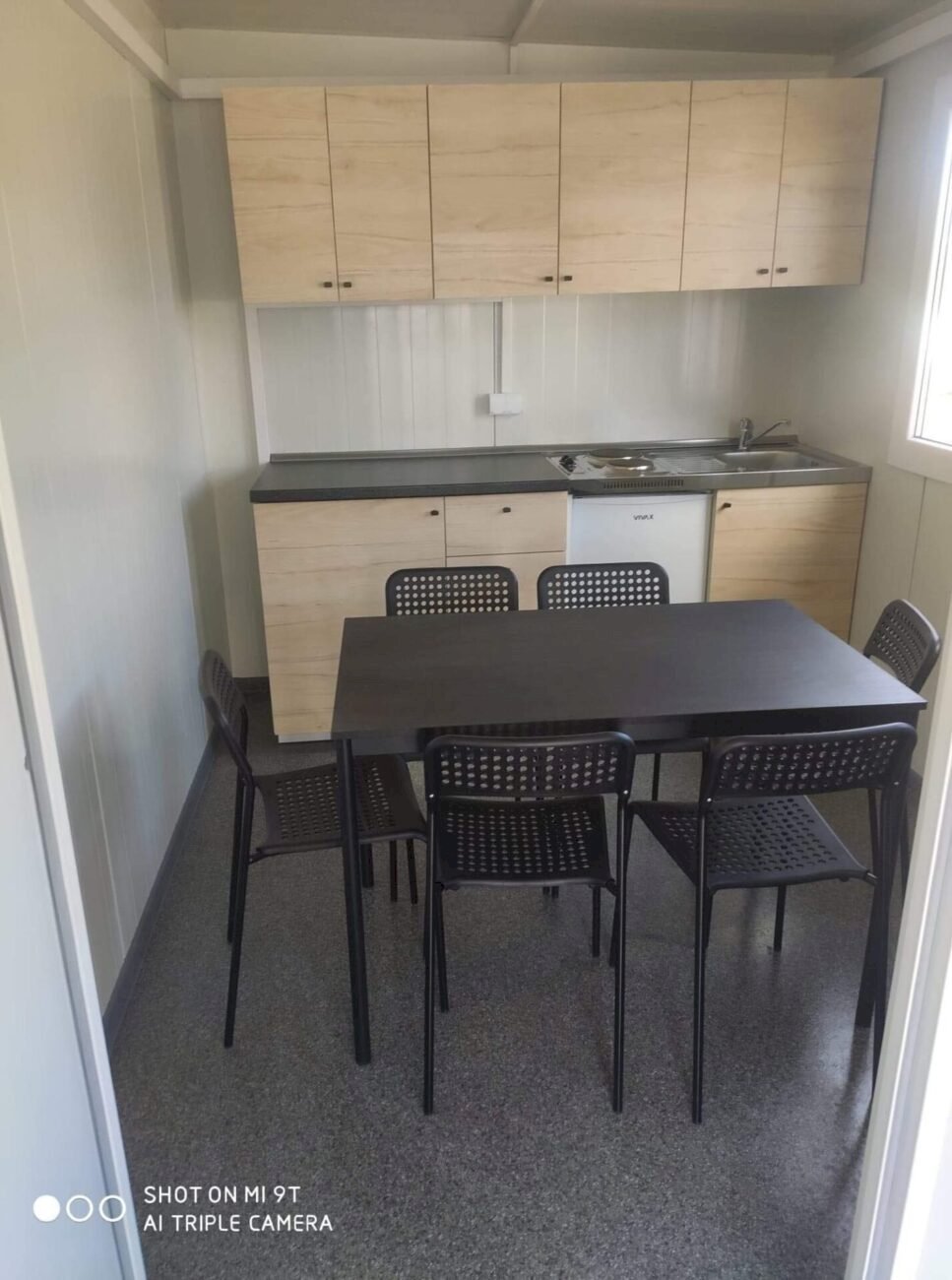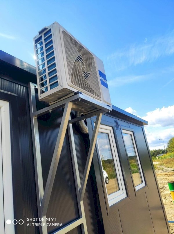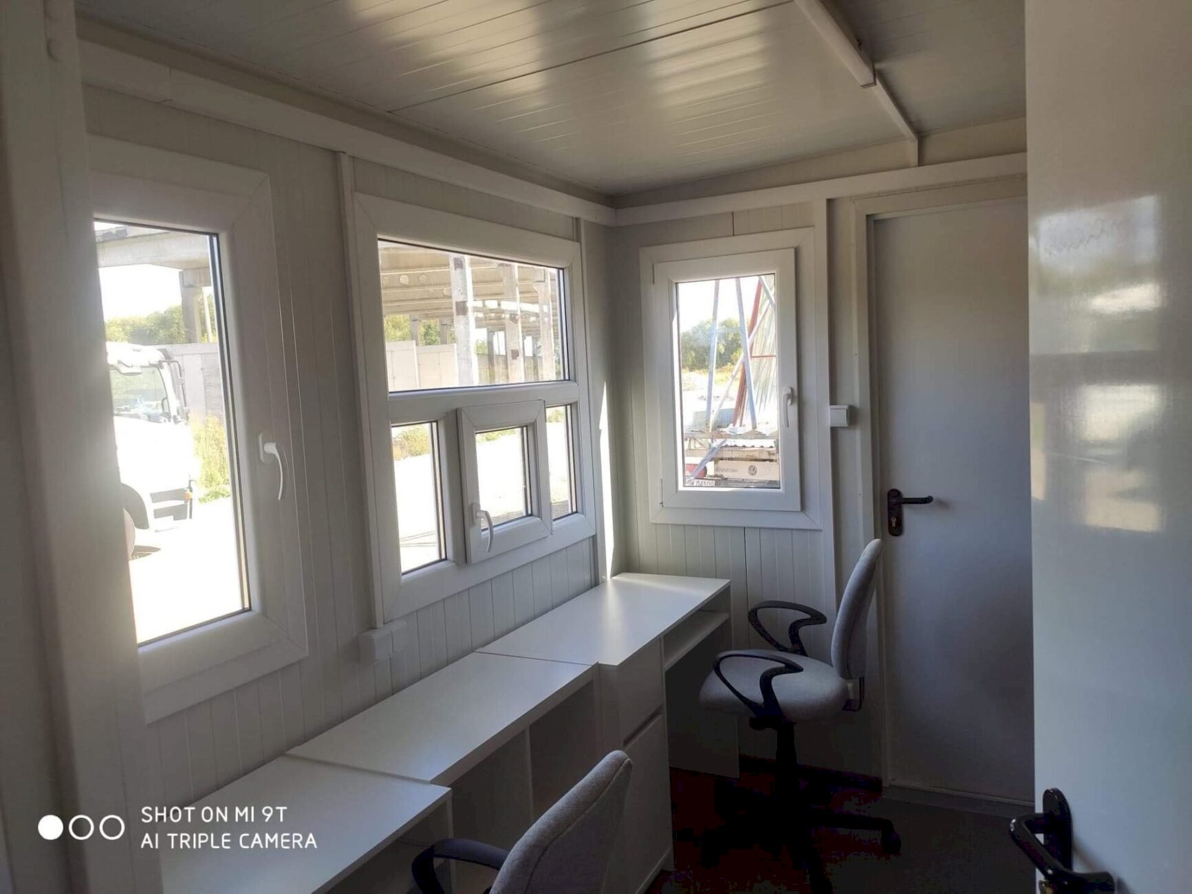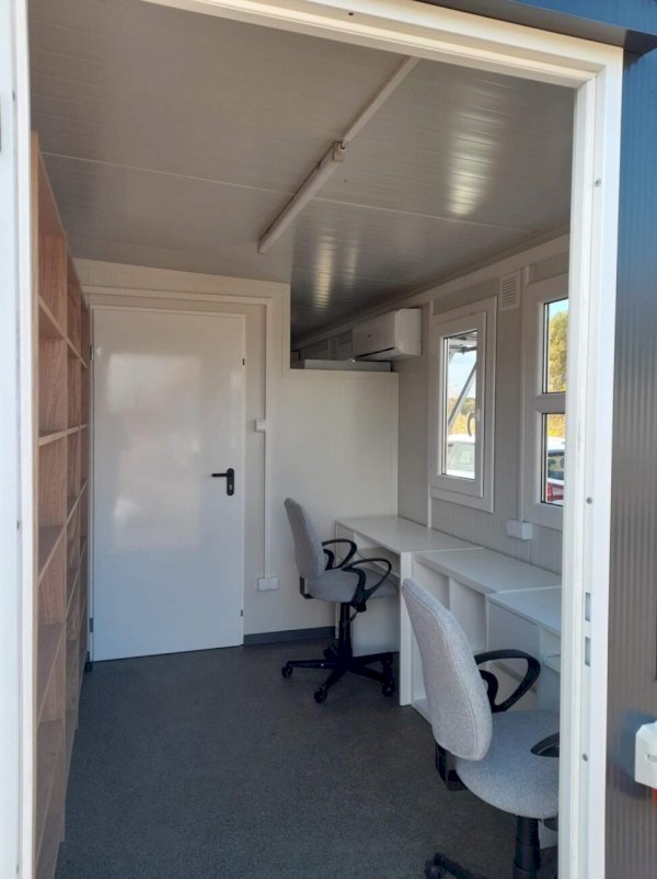 W kontenerze wydzielone zostały wygodne pomieszczenia biurowe, sanitarne oraz socjalne, w tym aneks kuchenny i szatnia. Wszystkie przestrzenie wyposażone są w nowoczesne instalacje elektryczne, ogrzewanie oraz klimatyzację grzewczo-chłodzącą, co zapewnia komfort pracy przez cały rok.