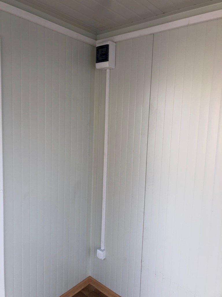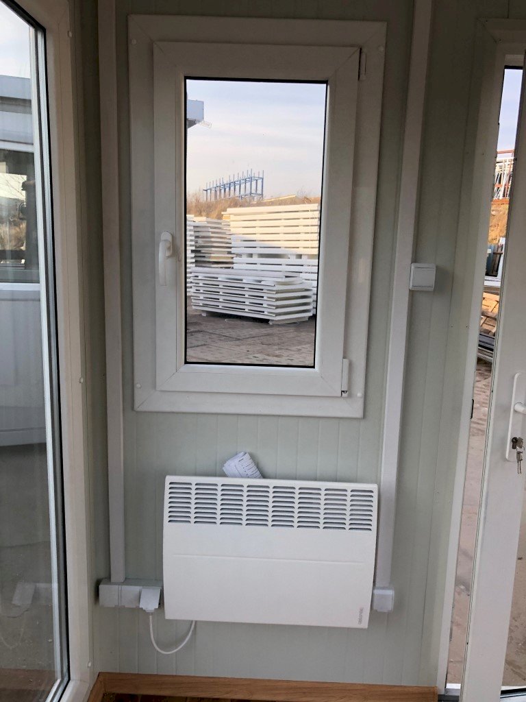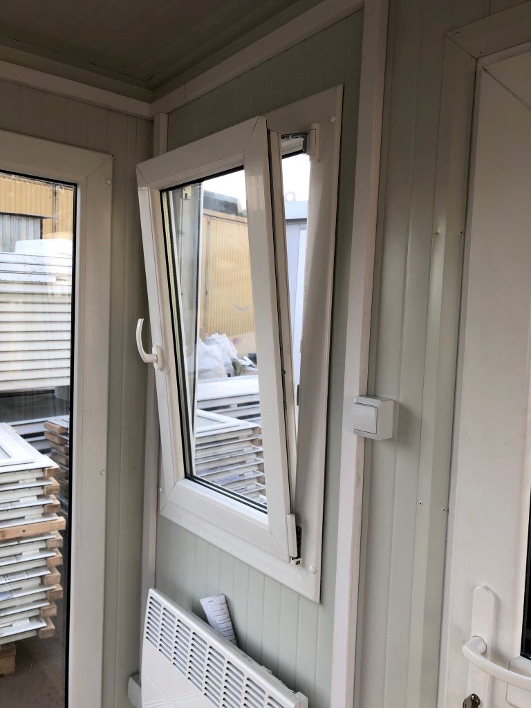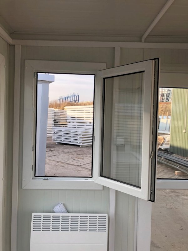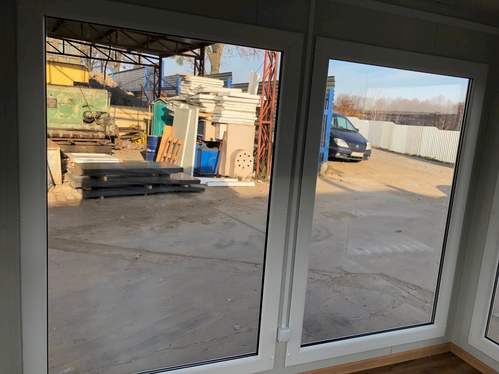 Nowoczesna stróżówka o wymiarach 3,00×2,40 m wyposażona w duże przeszklone witryny PCV. Doskonałe rozwiązanie dla punktów kontroli dostępu, ochrony lub obsługi klienta. Funkcjonalna, dobrze doświetlona i gotowa do użytkowania.